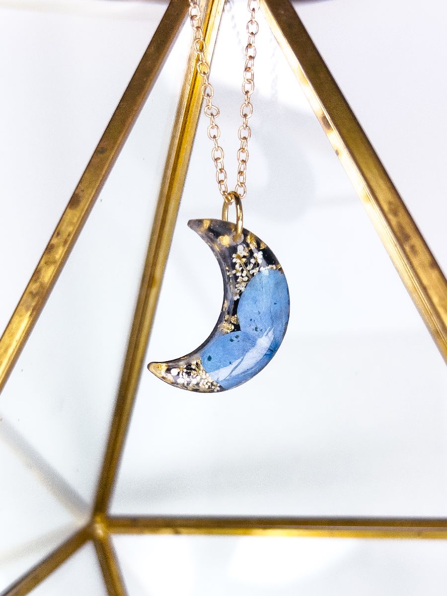 Hydrangea & Queen Anne's Lace Moon Necklace