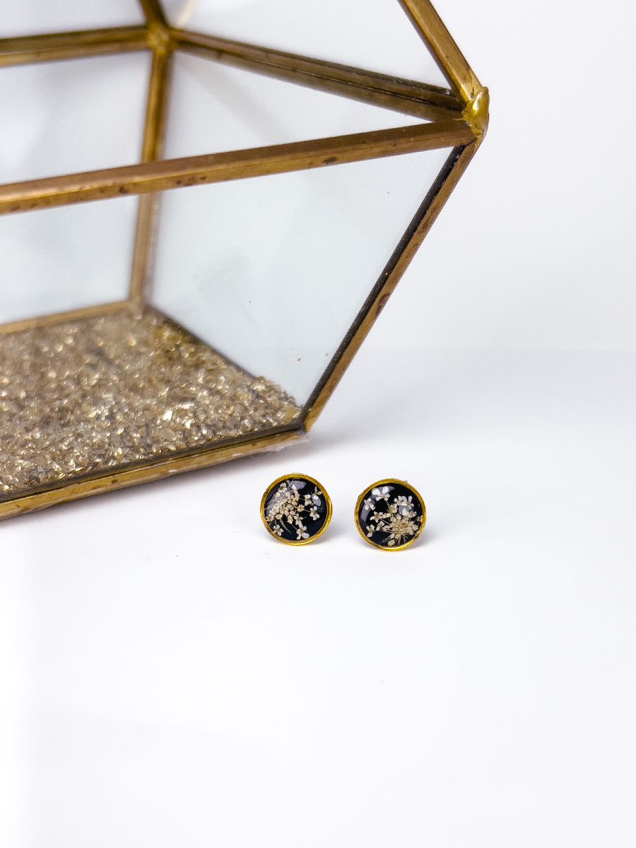 Queen Anne's Lace Black Stud Earrings